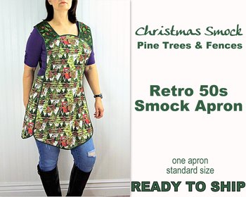 Garden Sketch Pinafore Apron with no ties, relaxed fit smock with pockets, standard size fits L-XL-2X, SHIPS FAST