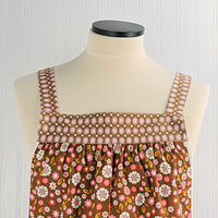 Indian Summer Brown Floral Pinafore, retro hostess apron, relaxed fit smock with pockets fits L/XL/2X, ready to ship
