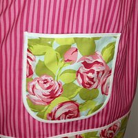 Lovely Pinafore Apron (made combining Amy Butler fabrics OOP Tumble Roses and a coordinating pink stripe fabric) is designed to be so easy to put on and take off using no ties, buttons, or fasteners of any kind. No gymnastics are required to don the apron! Simply slip the apron over your head like a t-shirt and slide your arms into the generous openings to put it on. The apron rests totally on the shoulders, placing no strain on the neck. Comfortable enough to wear all day long! Apron fully covers your clothing for protection while you are working around the house, but is completely split up the back (to the band at the top) to allow freedom of movement. Armholes are bound with a coordinating bias binding for extra strength and durability. Extra-large patch pockets are so handy for many purposes. Great care and attention are paid when I make these aprons-- there are no exposed seams or raw edges showing on my aprons! All seams are neatly enclosed for a sturdier and longer-lasting finished product. The apron is gathered in front and back where it attaches to the top bands and fits many sizes due to its unique design. (Standard size apron is shown above on the size 2X dress form.) Many of my customers wear this apron as a pinafore top over a t-shirt and leggings since they don't cook. This apron is not sewn until after order confirmation. I do not keep an inventory. Apron in photos is the original sample sewn to take listing photos. As with any handmade creation, fabric design placement will vary from apron to apron.